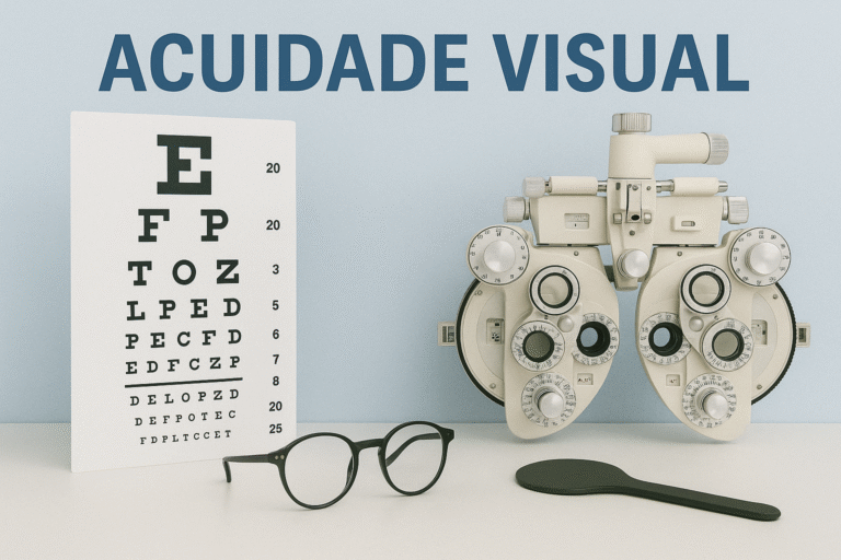 Esse exame avalia a nitidez com que você enxerga objetos a diferentes distâncias. É fundamental para identificar problemas como miopia, astigmatismo e hipermetropia. Utiliza testes visuais com letras ou símbolos padronizados.