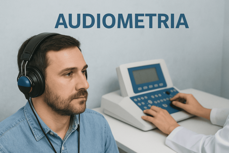 A audiometria mede sua capacidade de ouvir sons em diferentes frequências e volumes. É muito utilizada em exames admissionais e periódicos para avaliar a saúde auditiva, especialmente em ambientes com exposição a ruído.