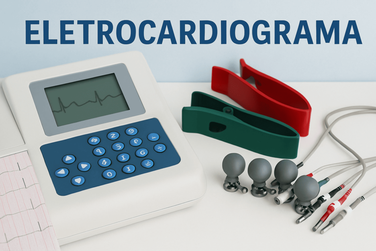 O eletrocardiograma registra a atividade elétrica do coração e permite identificar arritmias, infartos, sobrecargas cardíacas e outras alterações. É um exame rápido, indolor e de grande importância na medicina preventiva.
